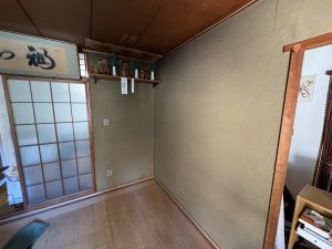 こんな時は土壁部分に下地をして、和風柄のクロス紙に張替えすると明るく今後何回でも張替えできるようになります(^▽^)/